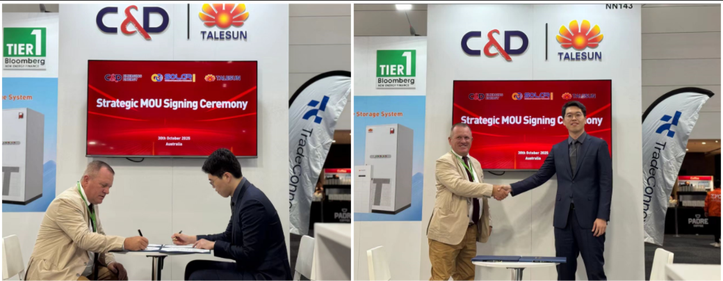 当地时间2025年10月30日,恰逢澳大利亚墨尔本 All-Energy Australia 展会次日,厦门建发新兴能源有限公司(以下简称“建发新兴能源”)、苏州腾晖光伏技术有限公司(以下简称”腾晖光伏”)与澳大利亚本地清洁能源企业Go Solar Group Pty Ltd.(以下简称 “Go solar” )正式签署战略合作协议。三方将围绕供应链协同、产品线拓展及渠道建设展开深度合作,加速高效光伏与储能解决方案在澳大利亚市场的落地。当天建发新兴能源、腾晖光伏,Go Solar分别代表三方签署协议,并合影留念。